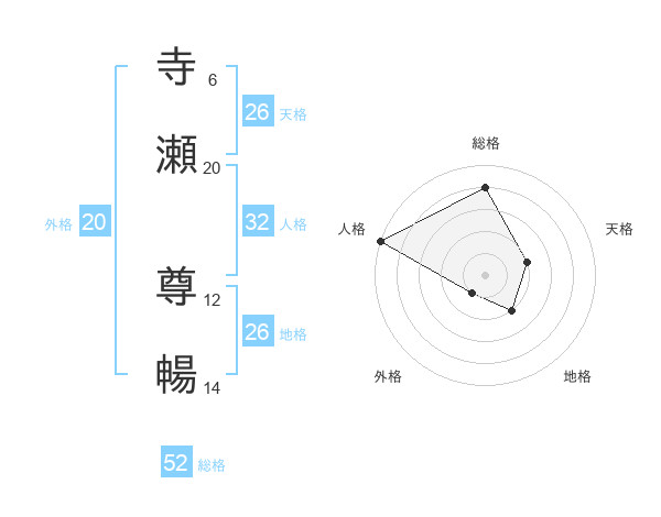 寺瀬 尊暢さんの天格は26画の2点!