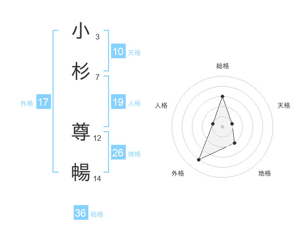 小杉 尊暢さんの地格は26画の2点!
