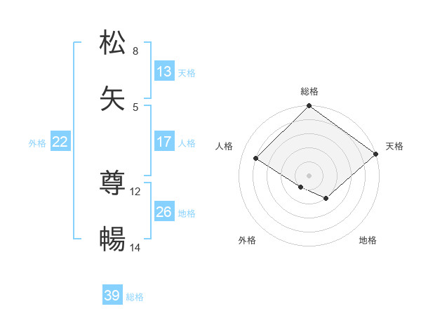 松矢 尊暢さんを姓名の画数から五運を鑑定