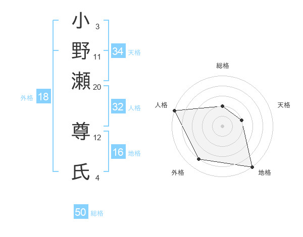 小野瀬 尊氏さんを姓名の画数から五運を鑑定