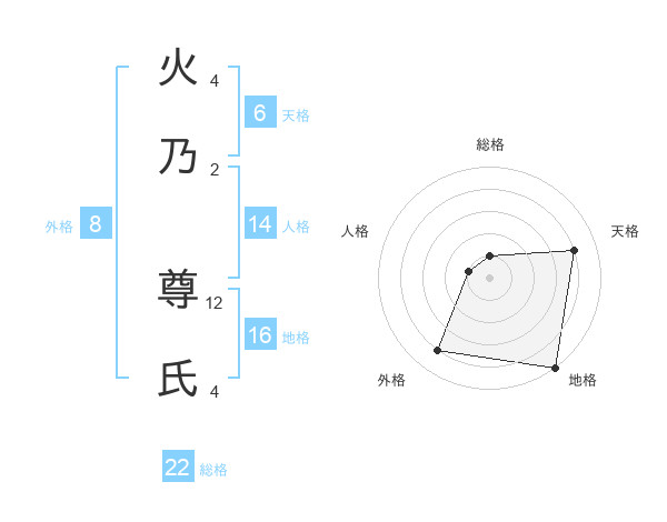 火乃 尊氏さんの総格は22画の1点!