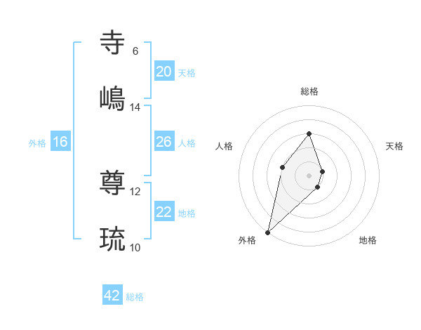 寺嶋 尊琉さんの総格は42画の3点!