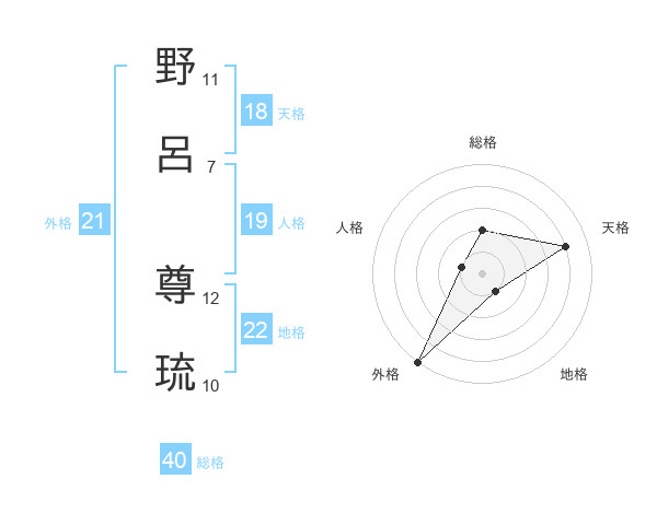 野呂 尊琉さんの外格は21画の5点!