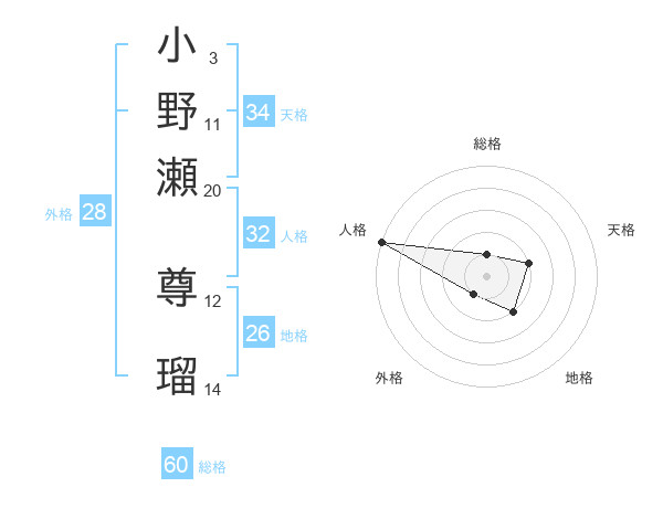 小野瀬 尊瑠さんを姓名の画数から五運を鑑定