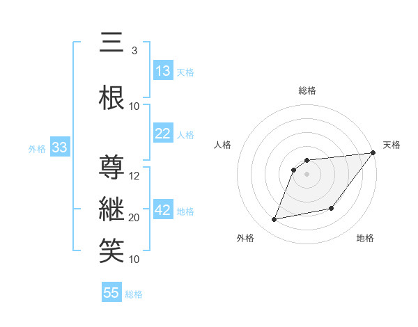三根 尊継笑さんを姓名の画数から五運を鑑定