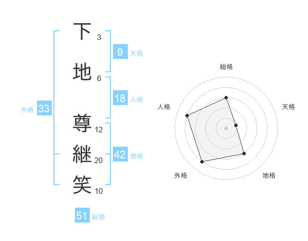 下地 尊継笑さんを姓名の画数から五運を鑑定