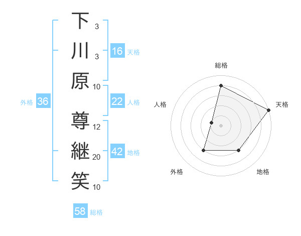下川原 尊継笑さんを姓名の画数から五運を鑑定