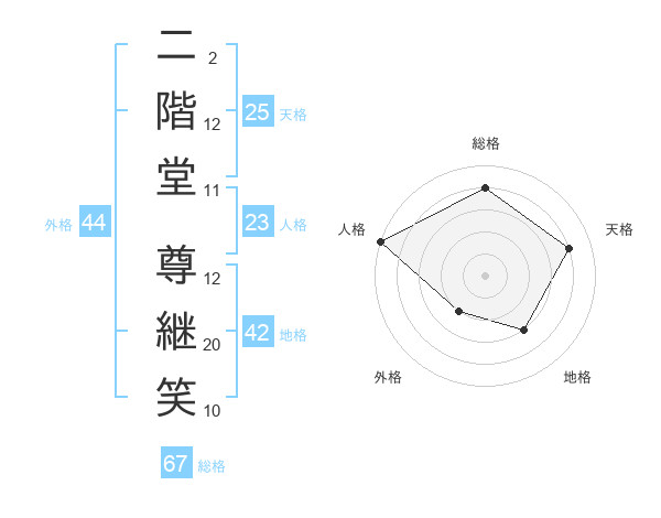 二階堂 尊継笑さんを姓名の画数から五運を鑑定