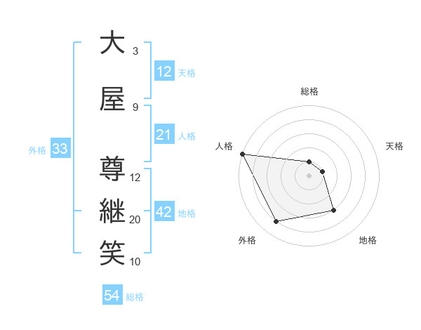 大屋 尊継笑さんを姓名の画数から五運を鑑定