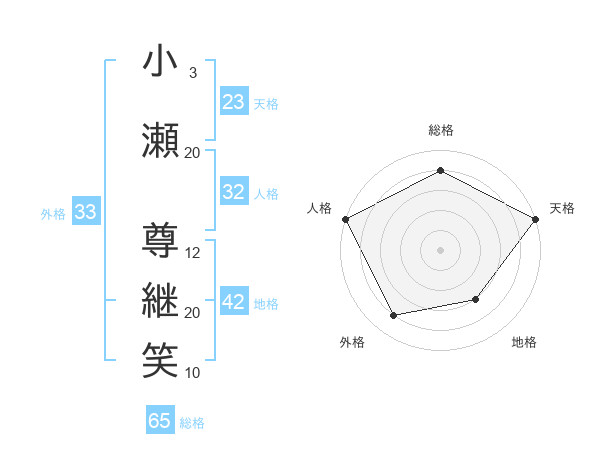 小瀬 尊継笑さんを姓名の画数から五運を鑑定