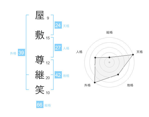 屋敷 尊継笑さんの総格は66画の1点!