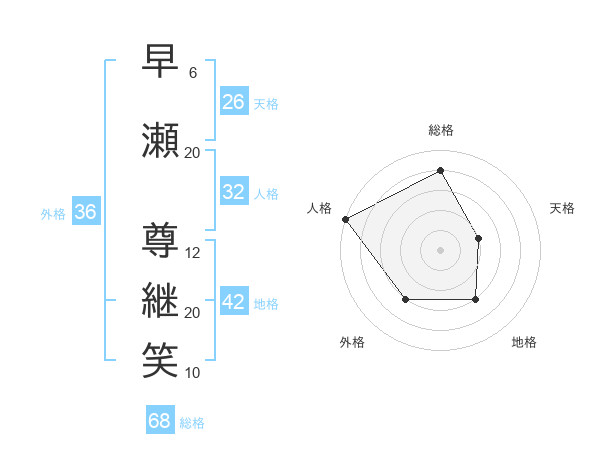 早瀬 尊継笑さんを姓名の画数から五運を鑑定