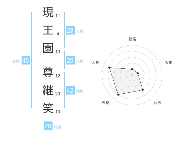 現王園 尊継笑さんを姓名の画数から五運を鑑定