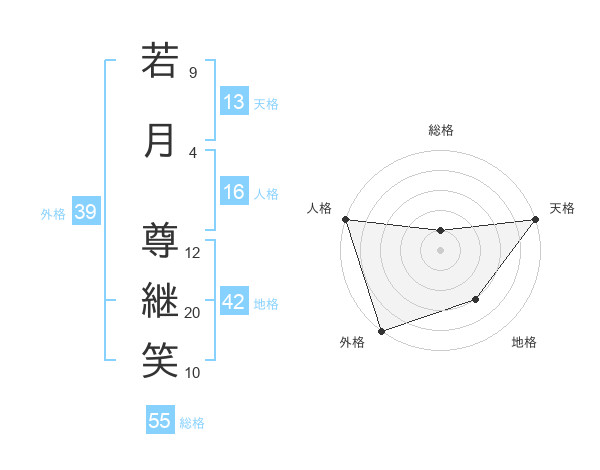 若月 尊継笑さんを姓名の画数から五運を鑑定