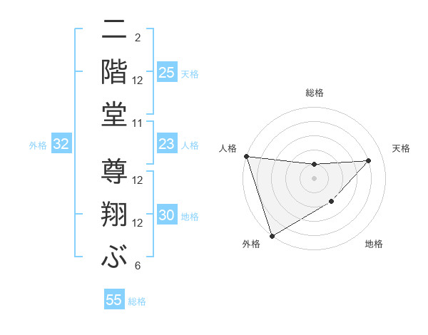 二階堂 尊翔ぶさんの外格は32画の5点!