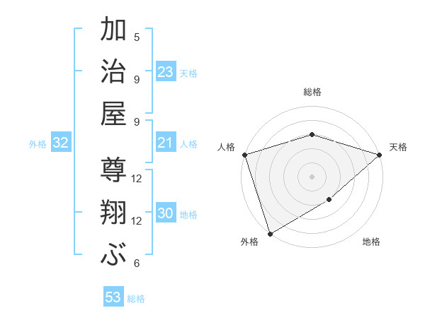 加治屋 尊翔ぶさんの天格は23画の5点