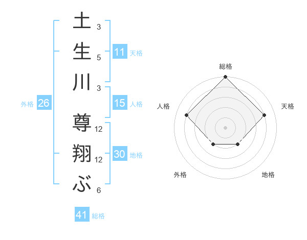 土生川 尊翔ぶさんを姓名の画数から五運を鑑定