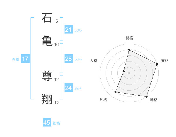 石亀 尊翔さんを姓名の画数から五運を鑑定
