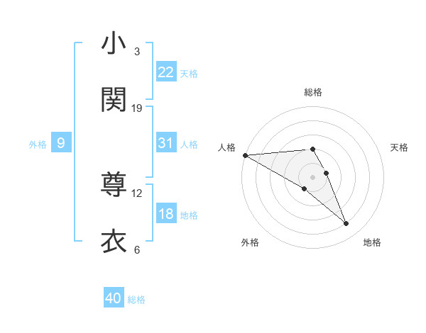 小関 尊衣さんを姓名の画数から五運を鑑定