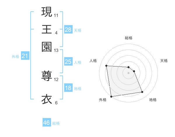 現王園 尊衣さんを姓名の画数から五運を鑑定