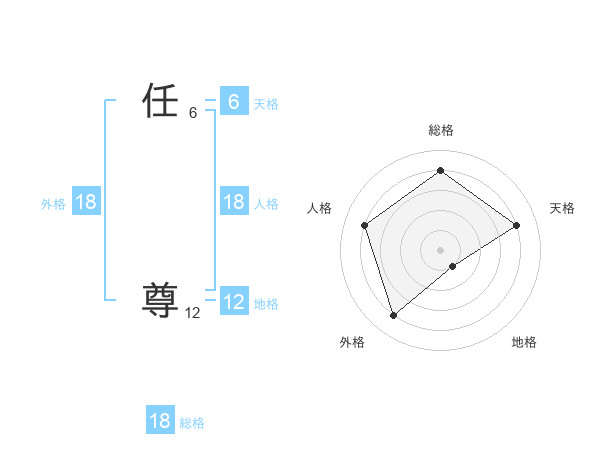 任 尊さんの外格は18画の4点!