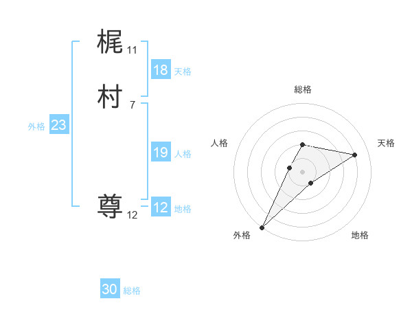 梶村 尊さんの外格は23画の5点!