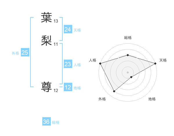 葉梨 尊さんの天格は24画の5点!