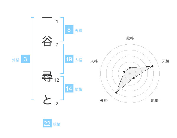 一谷 尋とさんの地格は14画の1点!