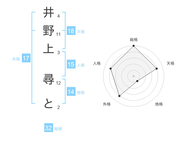 井野上 尋とさんを姓名の画数から五運を鑑定