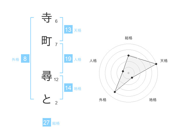 寺町 尋とさんの天格は13画の5点!