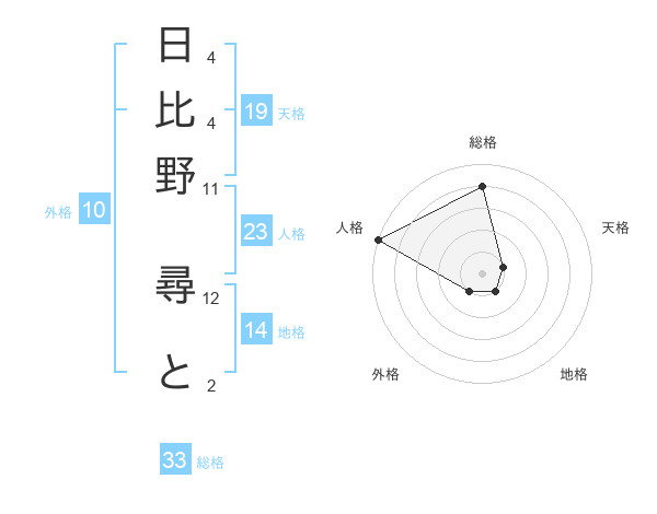 日比野 尋とさんを姓名の画数から五運を鑑定