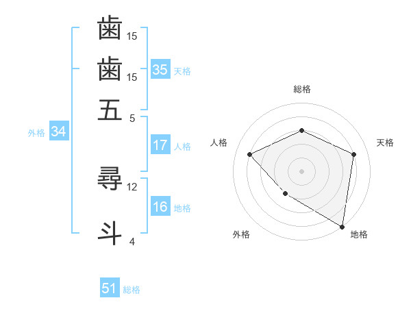 歯歯五 尋斗さんの総格は51画の3点!