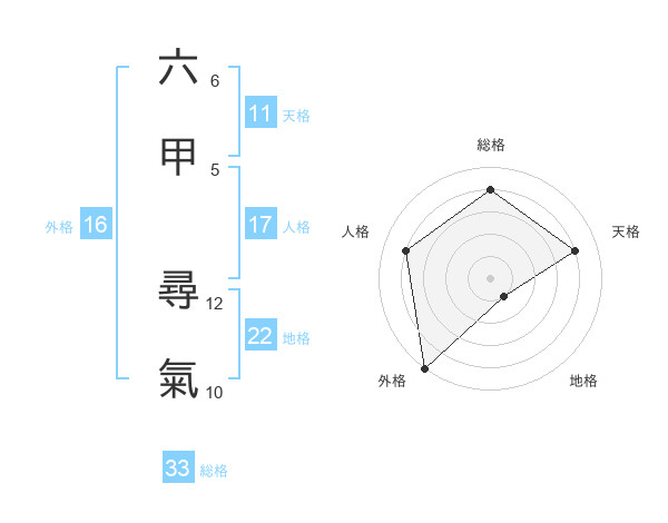 六甲 尋氣さんを姓名の画数から五運を鑑定