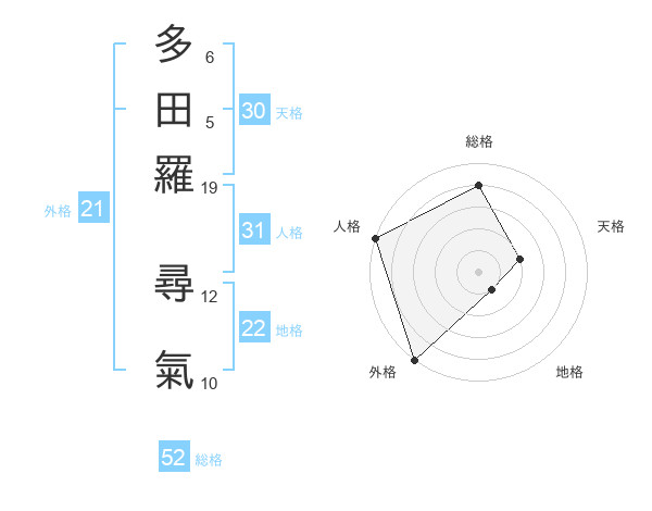 多田羅 尋氣さんを姓名の画数から五運を鑑定