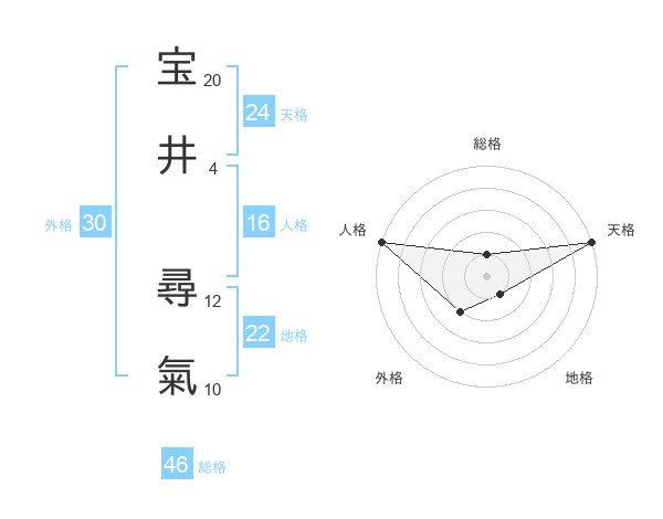 宝井 尋氣さんの天格は24画の5点!