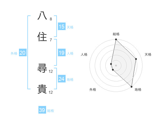 八住 尋貴さんを姓名の画数から五運を鑑定