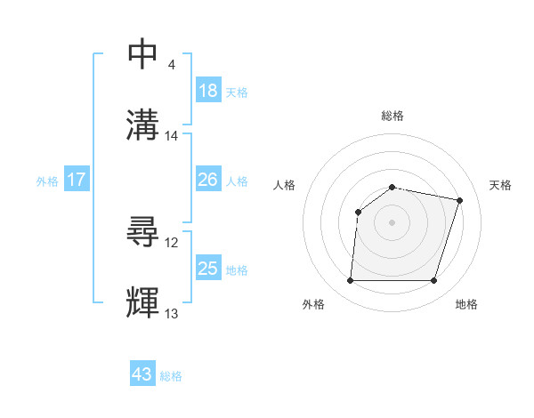 中溝 尋輝さんの外格は17画の4点!