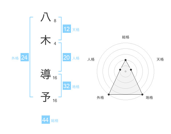 八木 導予さんの総格は44画の2点!