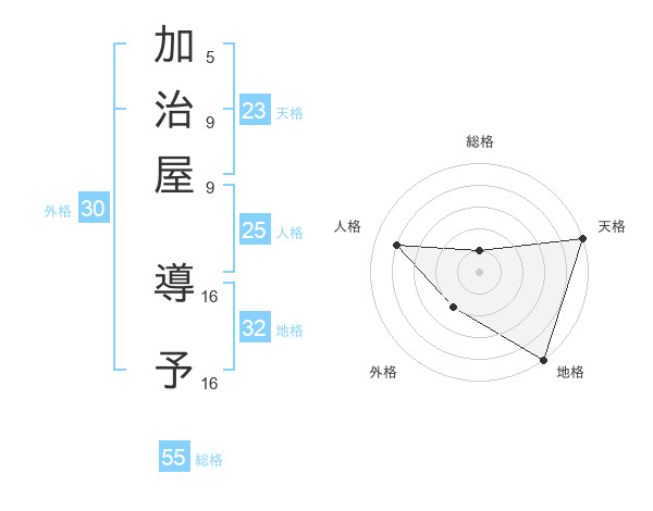 加治屋 導予さんを姓名の画数から五運を鑑定