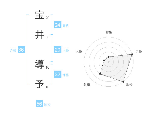 宝井 導予さんの天格は24画の5点!