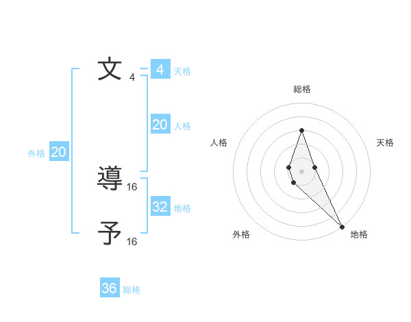 文 導予さんの総格は36画の3点!