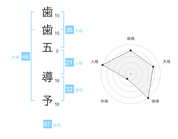 歯歯五 導予さんを姓名の画数から五運を鑑定