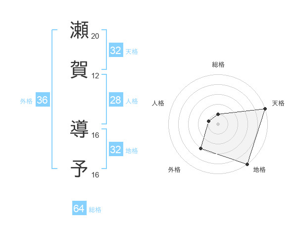 瀬賀 導予さんを姓名の画数から五運を鑑定