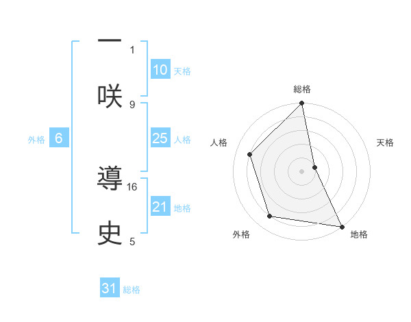 一咲 導史さんの総格は31画の5点!