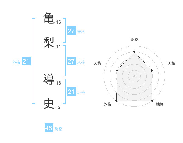 亀梨 導史さんの外格は21画の5点!