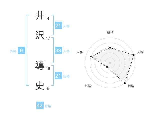 井沢 導史さんの天格は21画の5点!