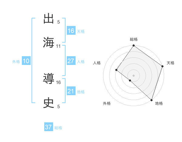 出海 導史さんの総格は37画の5点!