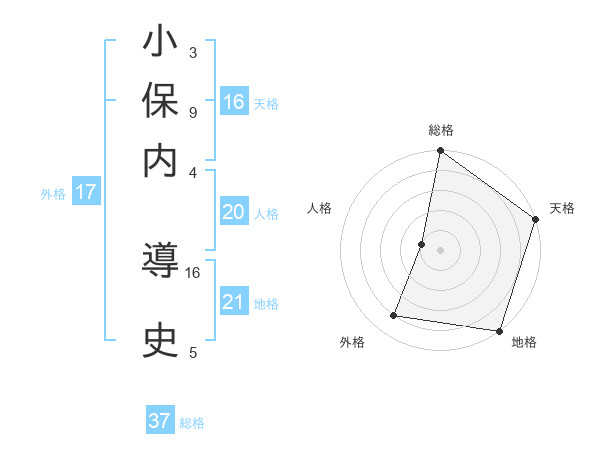 小保内 導史さんの総格は37画の5点!