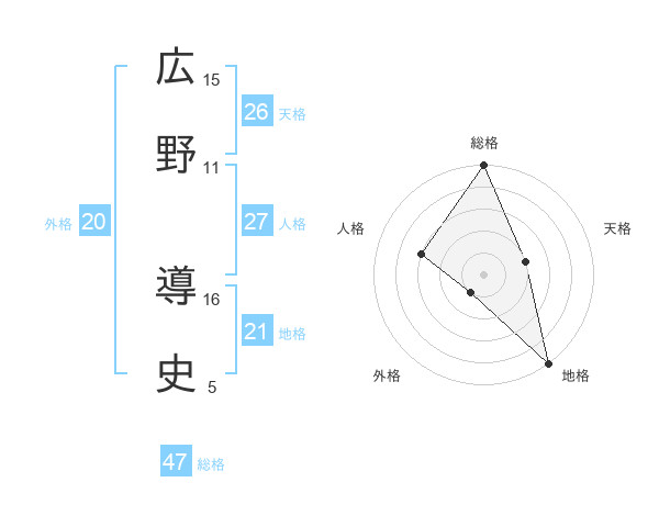 広野 導史さんの総格は47画の5点!