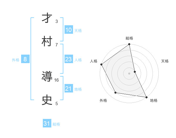 才村 導史さんの総格は31画の5点!